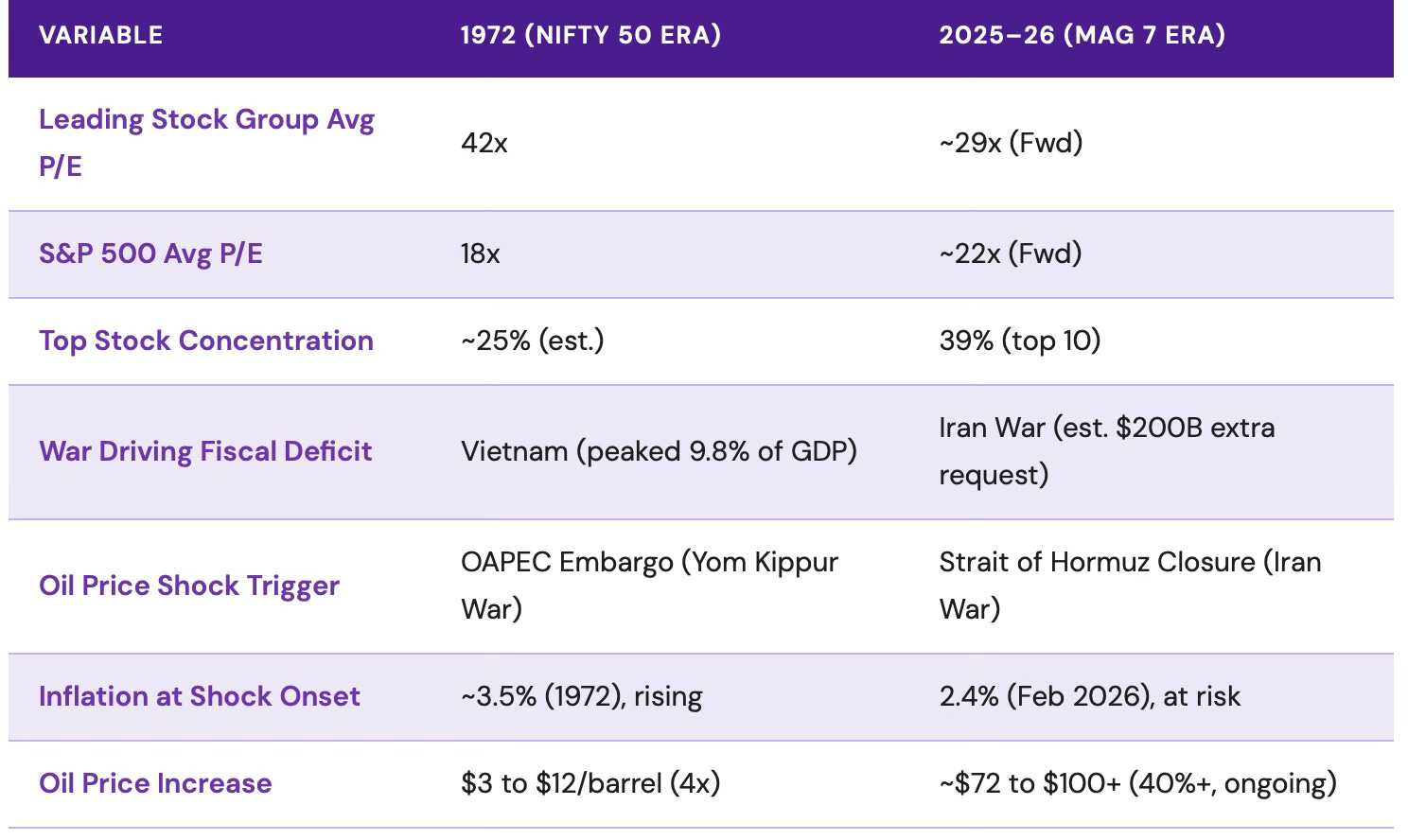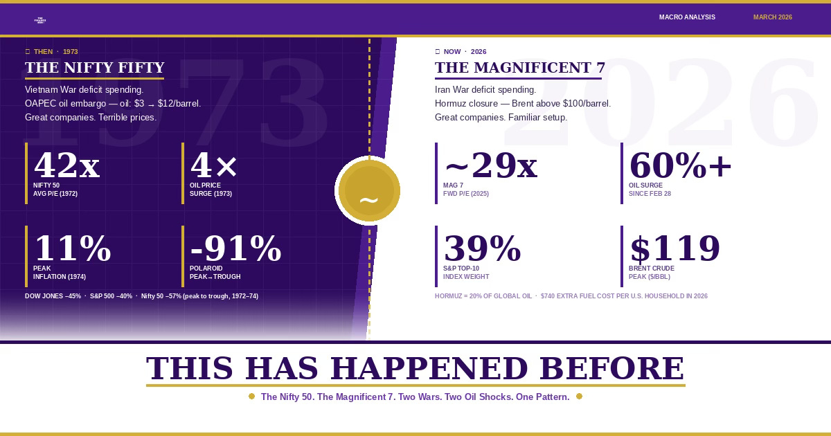 The Nifty 50, the Magnificent 7, two wars, two oil shocks, and what investors who ignored the parallels lost for a decade.